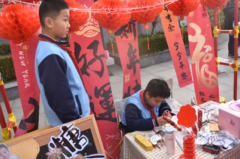 校长黄涛主动上门与学校周边企业泰山玻纤洽谈,计划邀请企业技术人员到学校开展职业启蒙课。家长群体的助力同样关键,每年元旦前后的迎新年文化大集义卖活动,家长们全程参与手工制作、摊位布置、秩序维护,成为实践课上的 “重要帮手”。