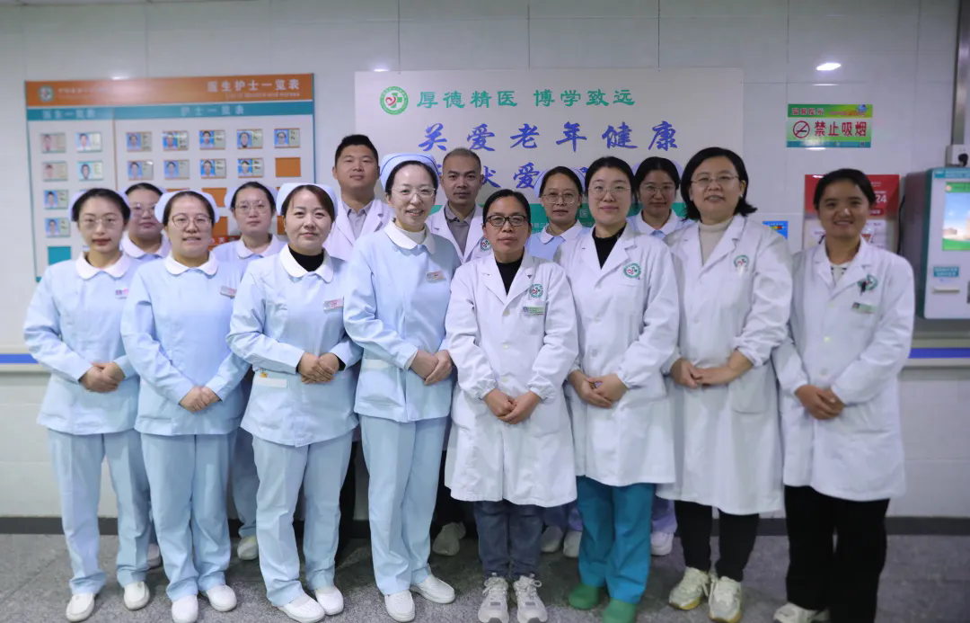 科室治疗重点病种:脑梗死、冠心病、糖尿病、高血压病、高脂血症、肺炎、支气管炎、类风湿性关节炎。依据老年综合征管理指南,制定老年患者健康评估制度,重点开展痴呆(MMSE)、日常生活能力(ADL)、跌倒、压疮、营养不良等评估,针对性的给予诊疗护理,积极开展老年病的健康宣教,提倡预防为主,普及健康生活方式,让患者得到贴心的诊疗服务。