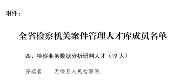 无棣县人民检察院干警齐瑞岩入选全省检察机关案件管理人才库