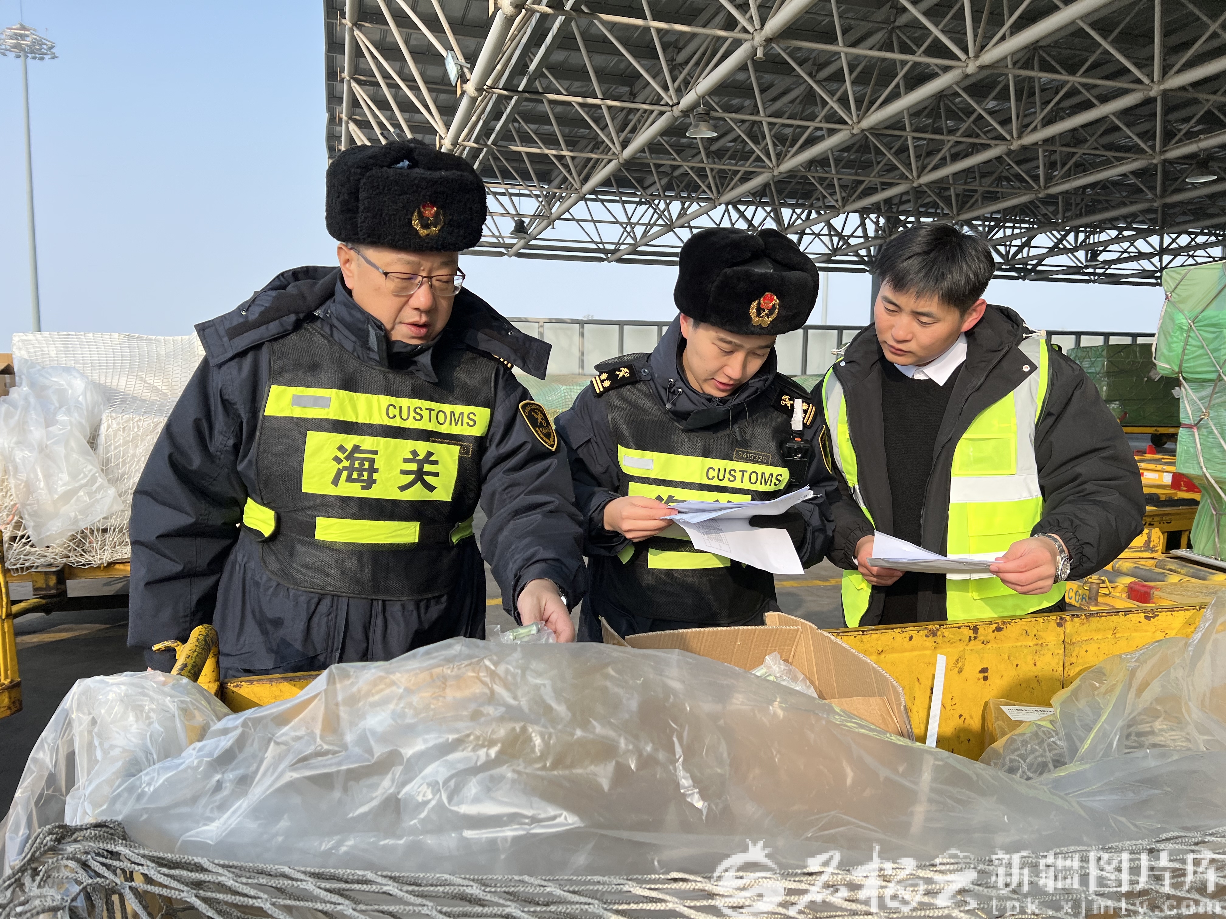 1月7日,乌鲁木齐天山机场海关关员对出境的跨境电商货物进行监管。刘飞虎摄