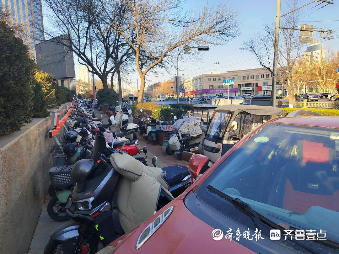 情报站·随手拍|济南经七路电动车乱停乱放,占用人行道影响通行