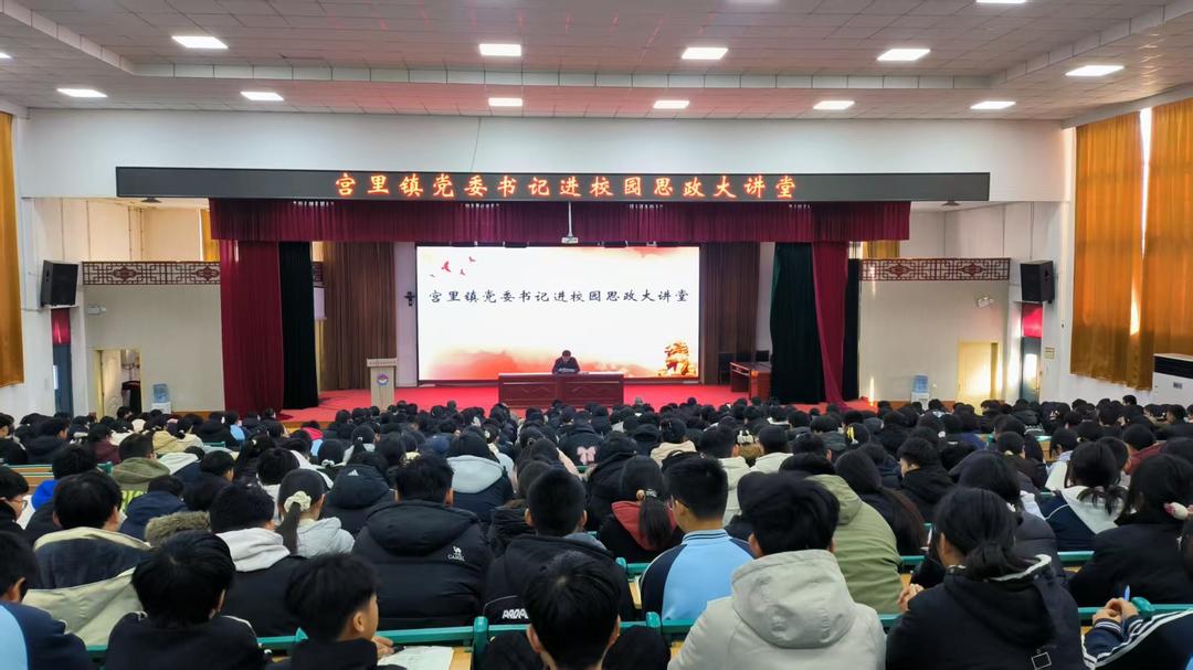 岁末天寒,蕴蓄生机。近日,宫里镇党委书记杨文平走进宫里镇初级中学,以“青春与成长、责任与使命”为主题,为全校师生讲授了一堂生动的思政课,激励学子们胸怀家国、扎根乡土、奋发成才。