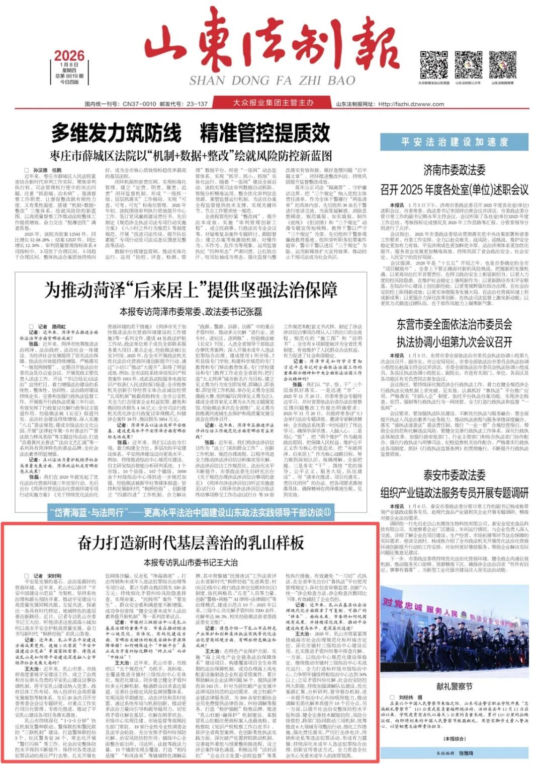平安是发展的基石,法治是最好的营商环境。近年来,乳山市以获评“平安中国建设示范县”为契机,坚持系统治理和源头预防并重,推动平安建设与高质量发展同频共振、互促共进,探索出一条具有时代特征、地域特色的基层善治新路径。