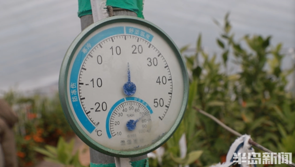 “橘子不怕热,就怕冷,青岛冬天的低温是最大的威胁。”曲俊平说,为了给蜜橘创造适宜的生长温度,他们将大棚设计成双层膜结构,外层膜负责防风防雨,内层膜用于保温。“到了零下四五度的时候,我们就把两层膜都放下来,棚里的温度就能维持在10摄氏度以上,完全能满足蜜橘的生长需求。”