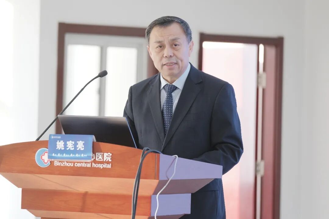 北京中医药大学第三附属医院密云院区院长、骨科中心主任陈兆军教授,山东省医师协会医学科学普及分会主任委员、山东大学齐鲁医院中毒与职业病科主任菅向东教授,滨州医学院烟台附属医院手足足外科主任、中心实验室主任、科技处处长徐林教授,滨州医学院附属医院张国辉教授,滨州市科学技术协会党组成员、副主席宋士波,惠民县科学技术协会党组书记、主席张连涛等领导和专家出席会议并致辞,会议由医院党委副书记姚宪亮主持。