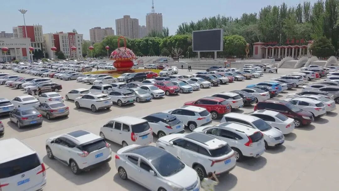 “五一”假期喀什市人民广场临时停放的车辆。喀什市融媒体中心 记者克德利亚 摄