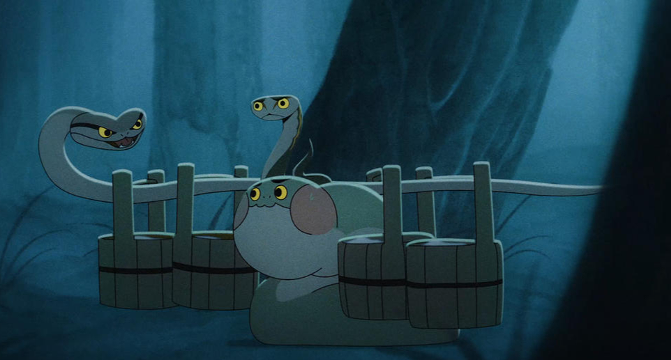 《如何成为三条龙》用20多分钟,讲了一个起承转合流畅、情绪非常饱满的故事。三个性格各异的蛇妖兄弟,为修仙苦练五百年,憧憬飞升成龙。有一天,它们生活的村子被巨石封山,河流断流后旱灾降临。村民们供奉龙王祈求降雨,恶龙久久不问民情,三个蛇妖偷偷摸摸地到龙王庙蹭香火,阴差阳错地许诺三天之后就下雨。上天不降雨,三个蛇妖以身入局,爬上爬下地挑水浇农田,却浇到杂草地里;肚子吸饱水制造人工降雨,却下了一田地的鱼。最终蛇妖因蹭香火而惹怒龙王,遭到天雷劈身,三兄弟尤其是大哥决绝地以肉身引雷劈巨石,龙王放大招后巨石粉碎,蛇妖殒命,水道开通,换来人间丰收好时光。