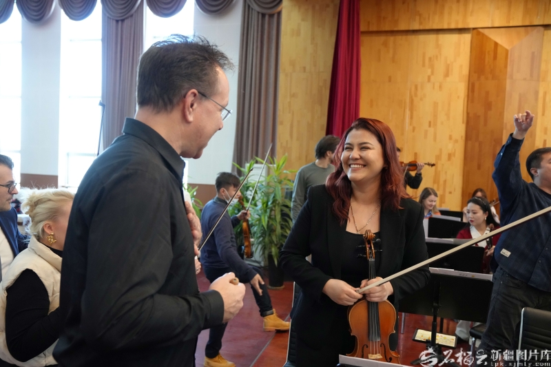 在交流环节,新疆爱乐乐团奏响具有新疆特色的《塔里木》,用悠扬旋律勾勒丝路热土的壮美画卷;随后,两院乐团携手合作,共同演绎中国民乐改编的交响乐《小放牛》《蝙蝠序曲》,赢得现场阵阵掌声。这场跨越国界的合奏,展现了双方高超的演奏技艺。