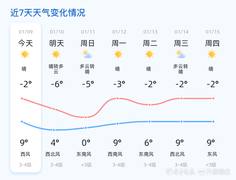 今日滨州晴朗温暖 气温回升至9℃