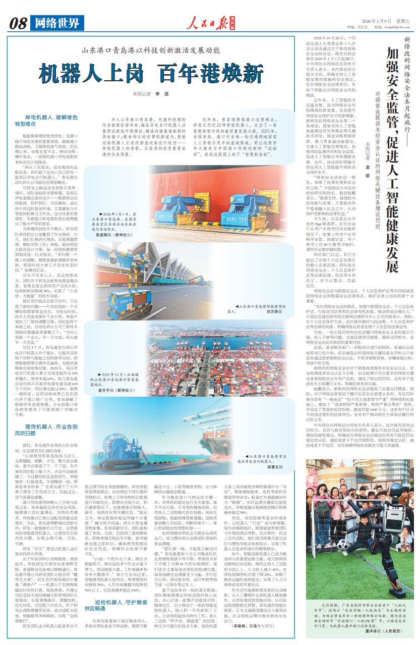 人民日报海外版聚焦山东港口青岛港:机器人上岗 百年港焕新