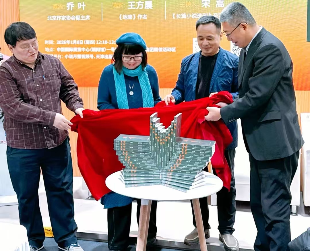 在全场倒数声中,天津出版传媒集团副总经理张云峰、北京作家协会副主席乔叶、《长篇小说选刊》主编宋嵩与作者王方晨共同为《地啸》揭幕,标志着作品正式与读者见面。