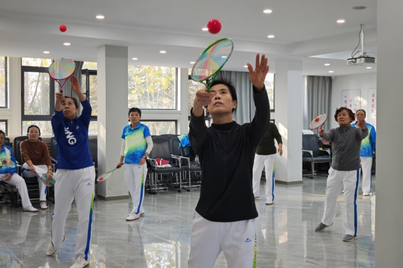 活动现场,邢玉老师耐心细致地讲解柔力球的持拍方法、发力技巧和基础动作,从握拍、摆拍的规范姿势,到抛球、接球的连贯要领,都逐一示范指导。学员们热情高涨,手持球拍跟着老师的节奏,凝心聚力、步步跟进,粉色的柔力球在球拍间灵活翻飞,划出一道道优美的弧线。大家相互切磋动作、交流心得,活动室内不时响起欢声笑语,洋溢着欢乐和谐的氛围。