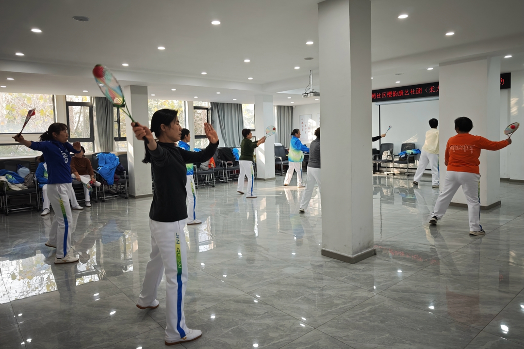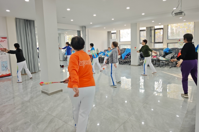 【文化社区・樱学善行】滕州龙泉街道樱花苑社区新时代文明实践站开展樱韵康艺社团柔力球公益训练活动