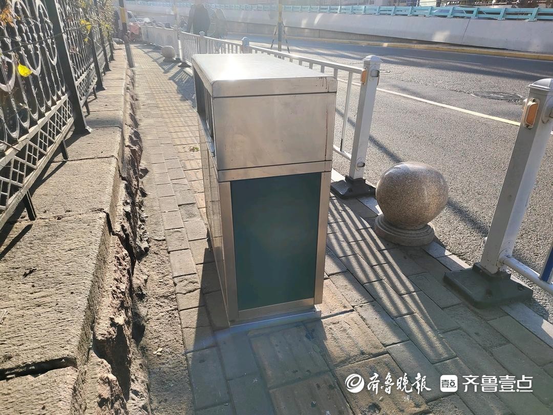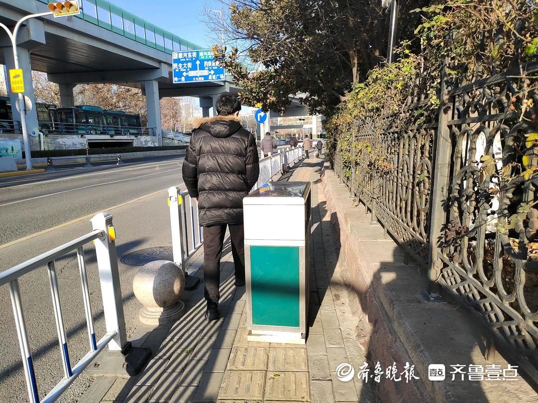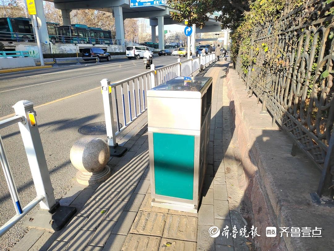 情报站·随手拍|济南文化西路垃圾箱“霸占”人行道,市民难通行