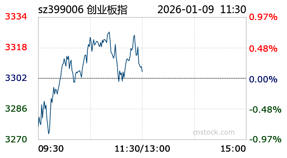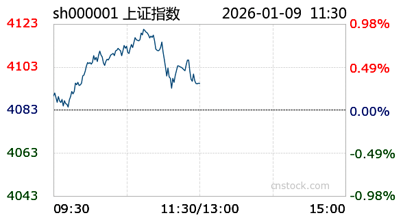 AI小壹1月9日讯 沪市小幅上涨,最高触及4121.7点,最低下探4083.62点,振幅0.3%。截至今日11:30收盘,上证指数报4095.33点,涨幅0.3%,成交额8513.51亿元,成交量4.85亿;深证成指报14038.46点,最高14139.54点,最低13917.78点,涨幅0.57%,成交额1.21千亿元,成交量6.6亿;创业板报3305.48点,最高3327.52点,最低3269.99点,涨幅0.1%,成交额5795.15亿元,成交量2.23亿。