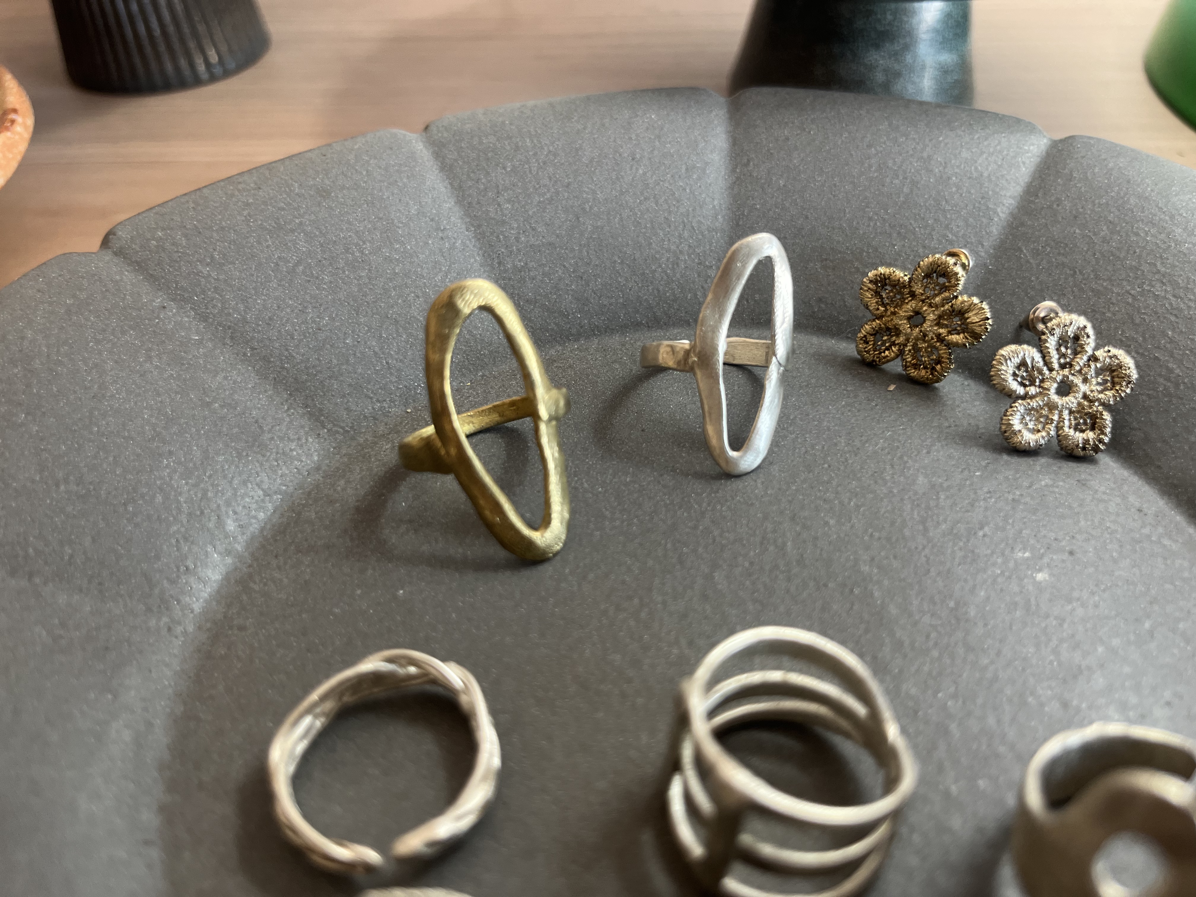 铜饰的崛起,既有被动替代的成分,也有主动创新的推力。范女士介绍,铜作为有色金属,天然带有黄色基底,镀上金粉就能呈现金色质感,做旧处理又能变成复古黑色,色彩玩法比银饰更丰富。现在店里很多设计师款式都会同时推出银质和铜质版本,让消费者根据预算自主选择。“之前黄铜款式的产品还挺稀有,现在已经成了常规选项,尤其是银饰涨价后,考虑铜饰的客户也变多了。”