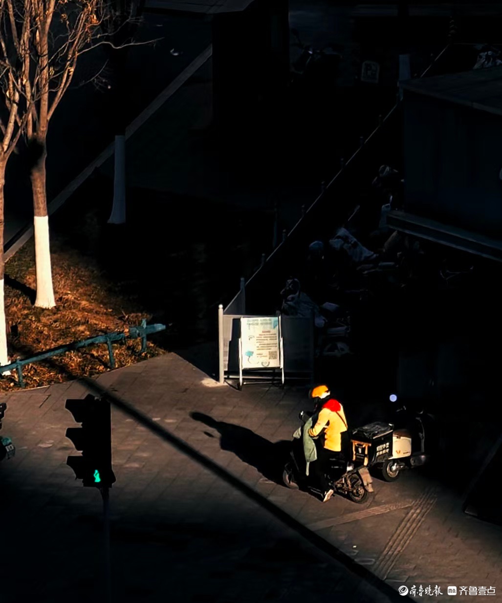 晨光中的外卖小哥