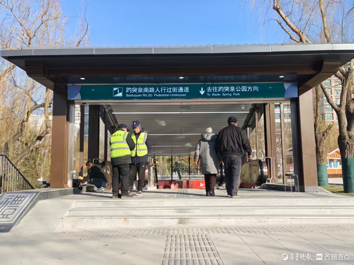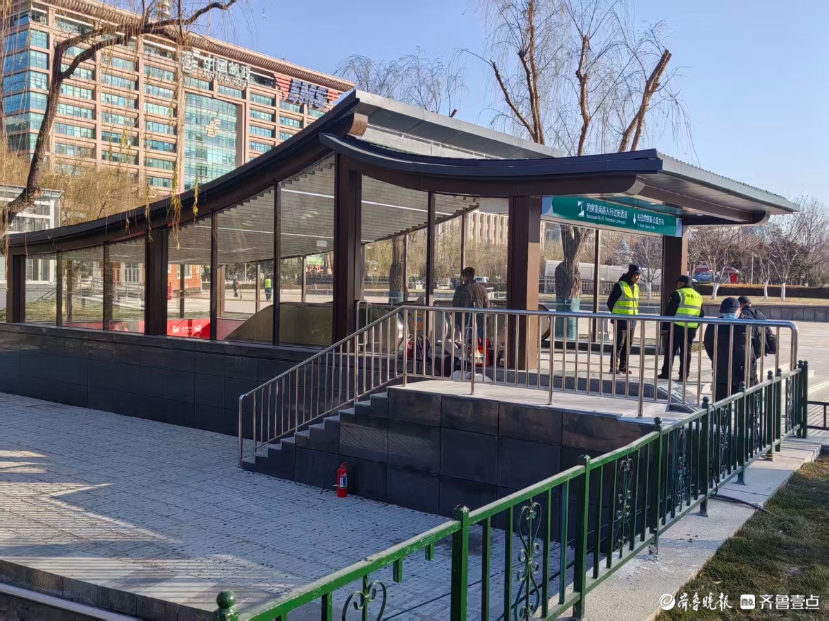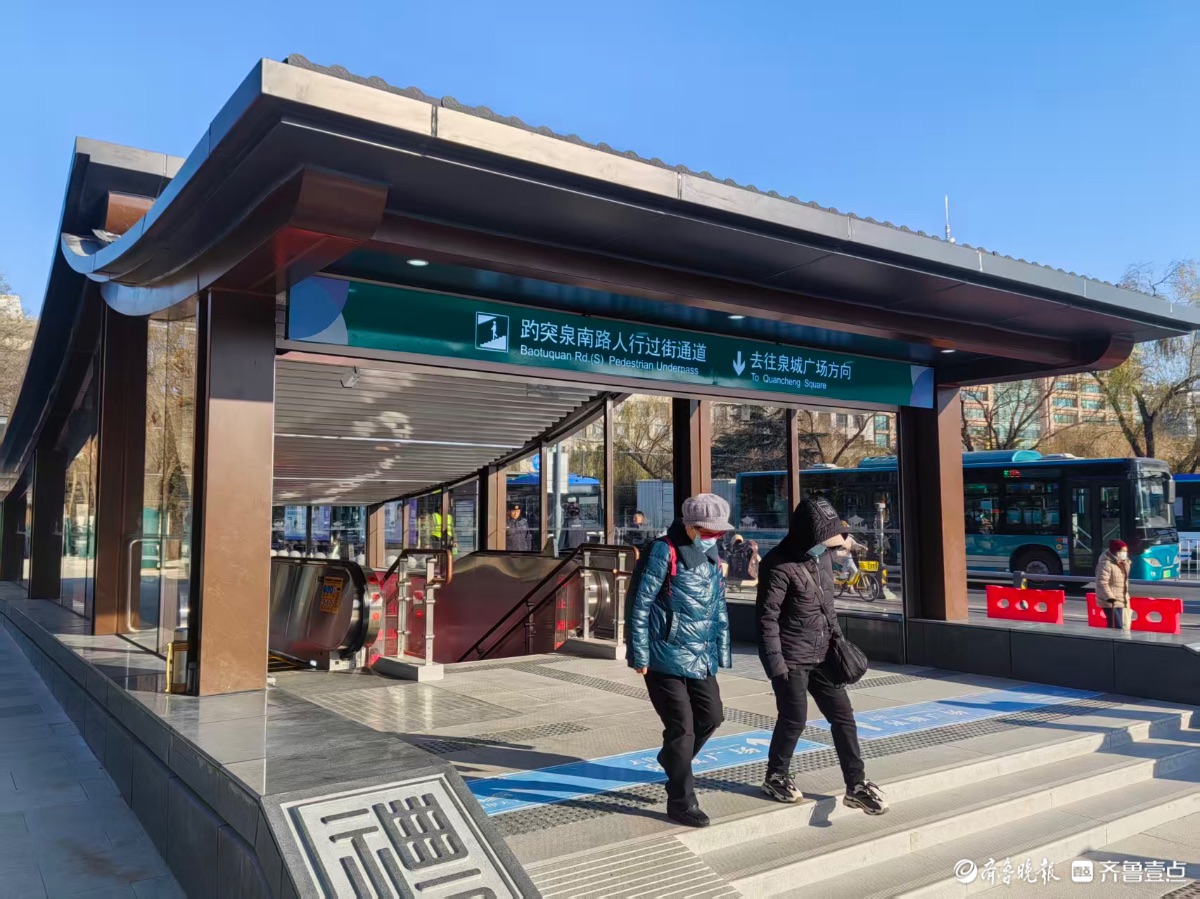 2025年12月31日,济南趵突泉南路人行过街通道正式启用,为泉城广场与趵突泉公园架起了便捷的地下纽带。通道外观融合中式屋顶与现代玻璃幕墙,与周边古典景致相映成趣,内部配备自动扶梯,清晰的导视标识,行人两分钟即可完成过街。