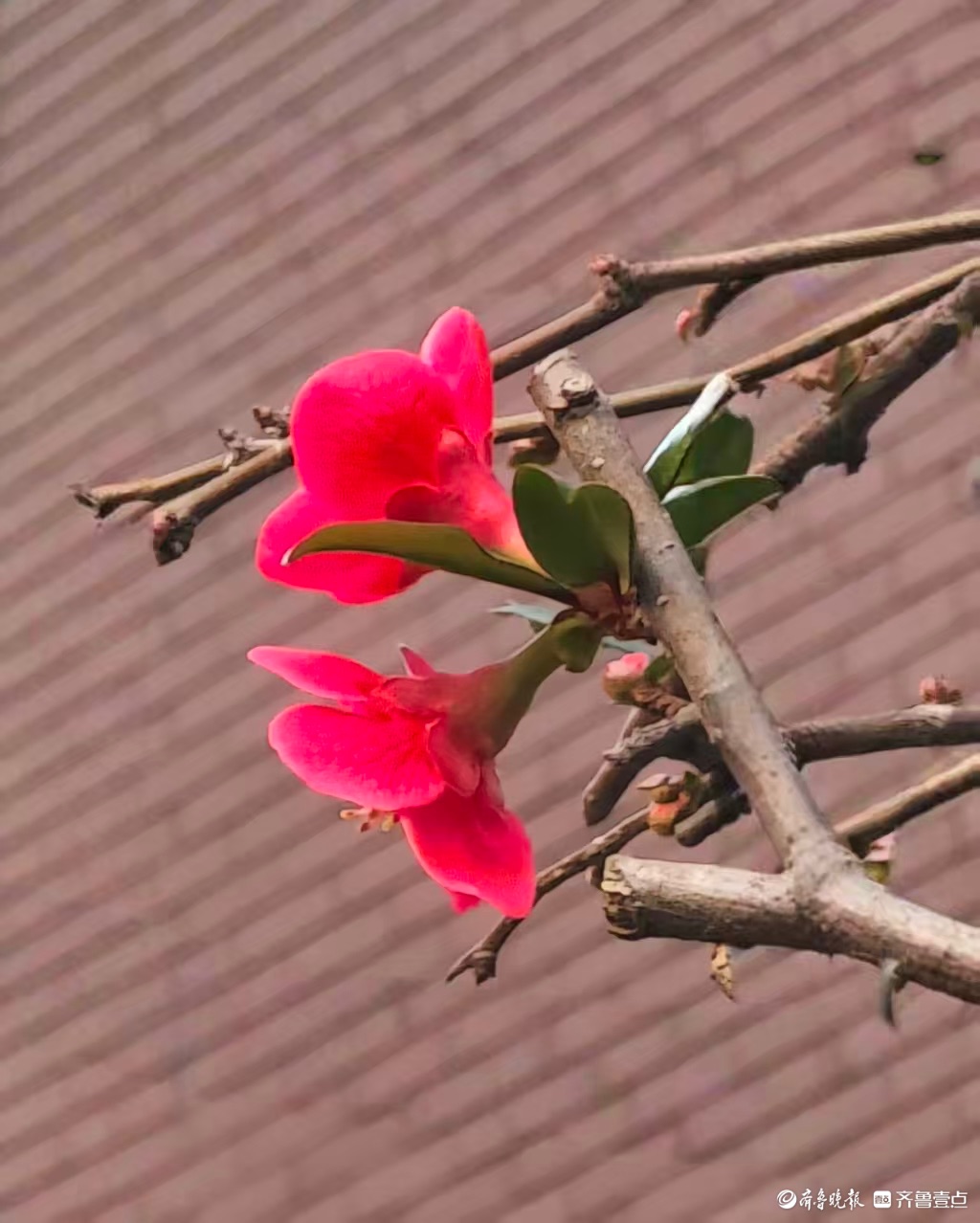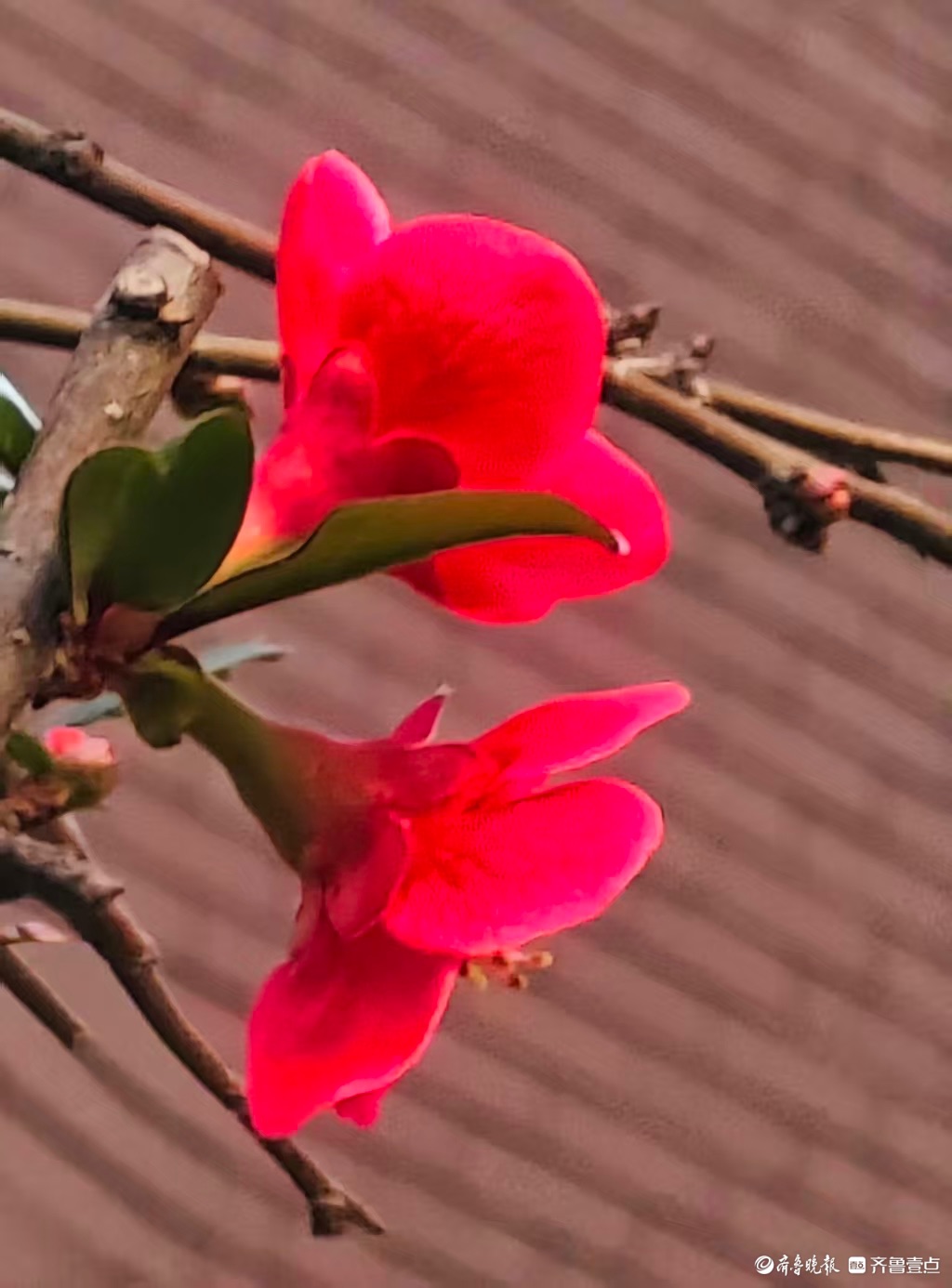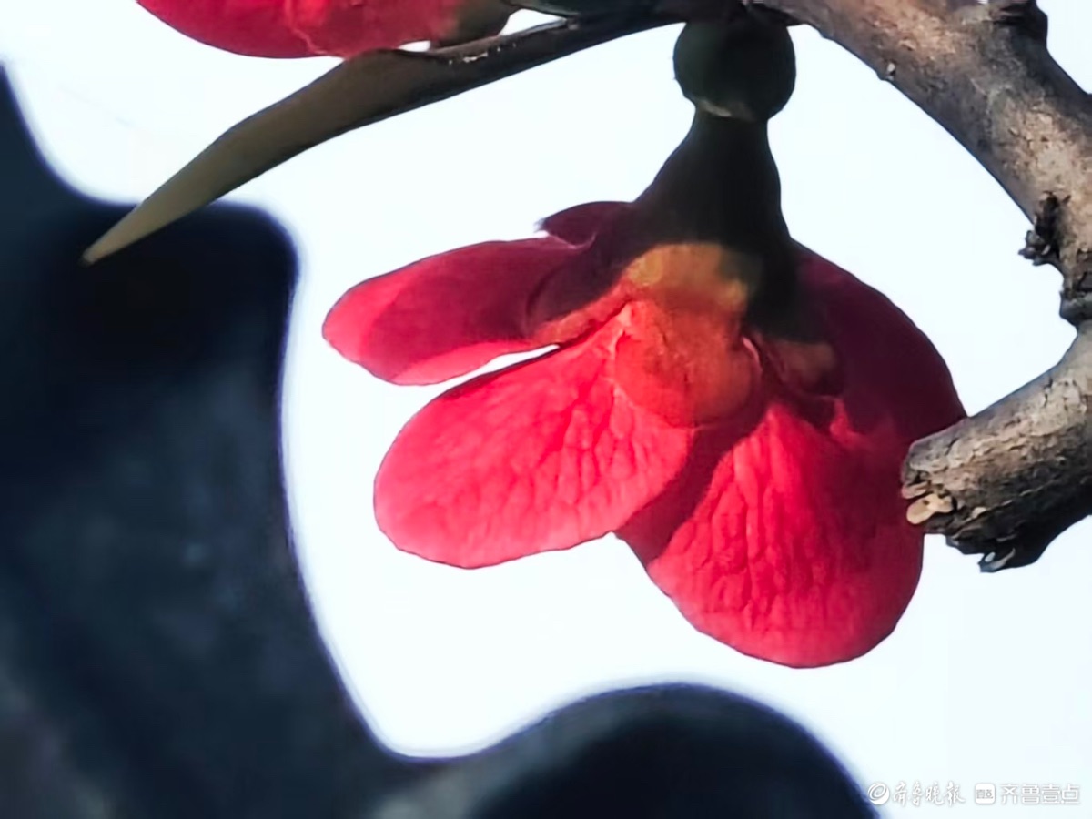 1月7日,在这寒冷的冬日,小区邻居庭院里的贴梗海棠花朵鲜艳夺目,红得似火,在一片萧瑟中格外耀眼,每次路过都忍不住驻足欣赏。高军摄