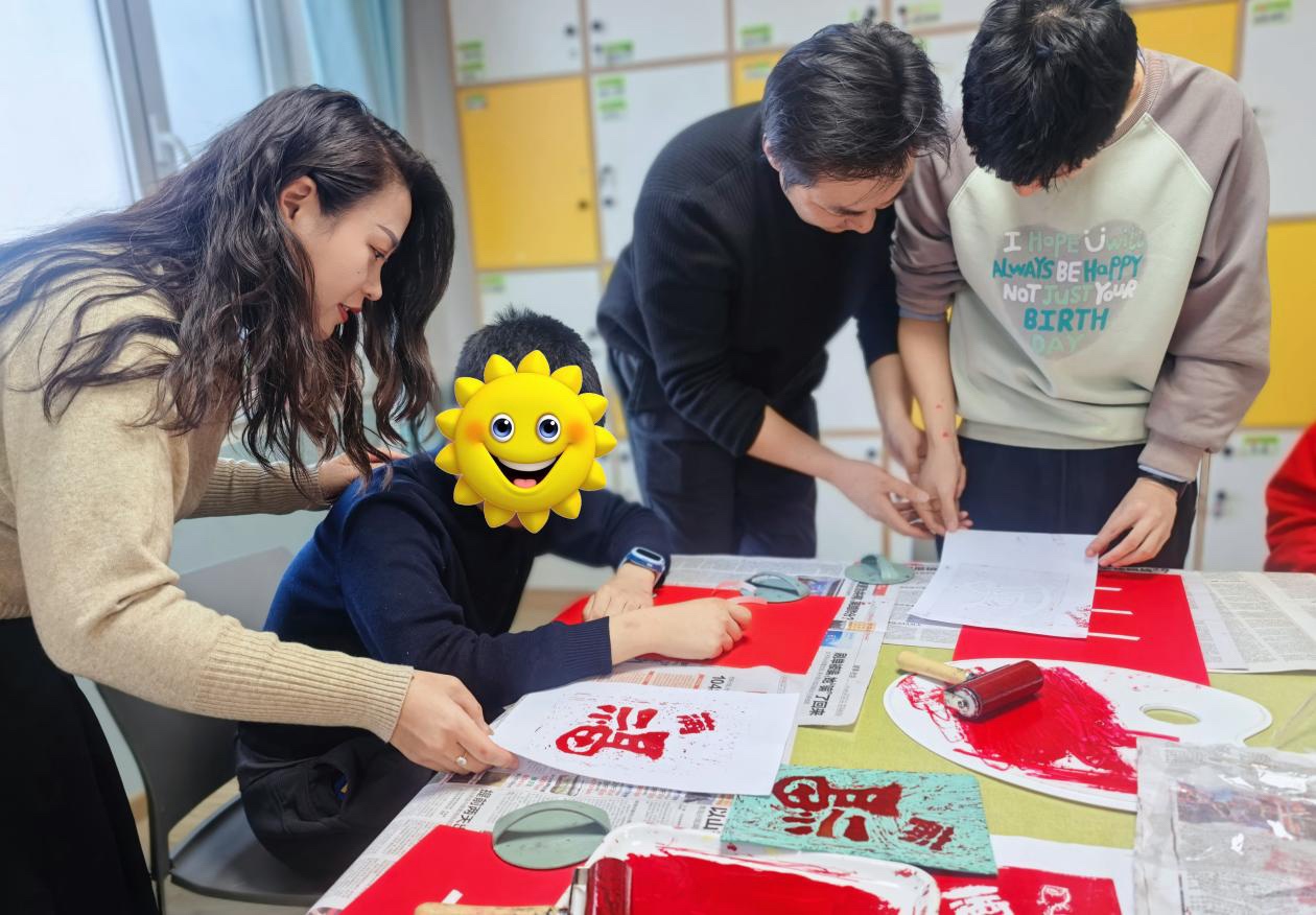 随后,一场温馨的“新春福字拓印”融合互动活动在欢声笑语中展开。会员们与孩子们携手合作,共同体验传统拓印技艺,在红纸金墨间传递美好祝愿。