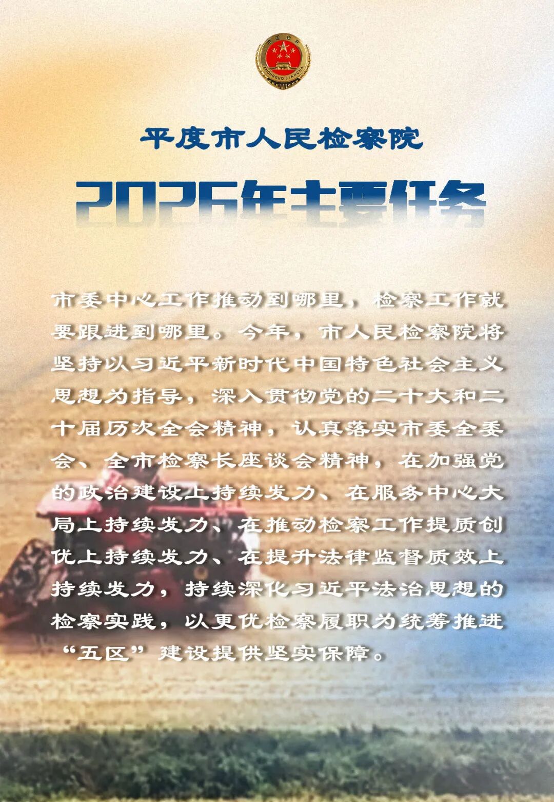 带您速览平度检察2025年度答卷地方法治 | 2026-01-09 17:54:58 微信扫码扫码下载客户端聚焦思想引领铸牢政治忠诚持续擦亮鲜明政治底色聚焦中心大局融入“五区”建设持续彰显鲜明价值追求聚焦主责主业助力法治平度建设持续铸就鲜明履职特征(平度市人民检察院)责任编辑:李思羽
