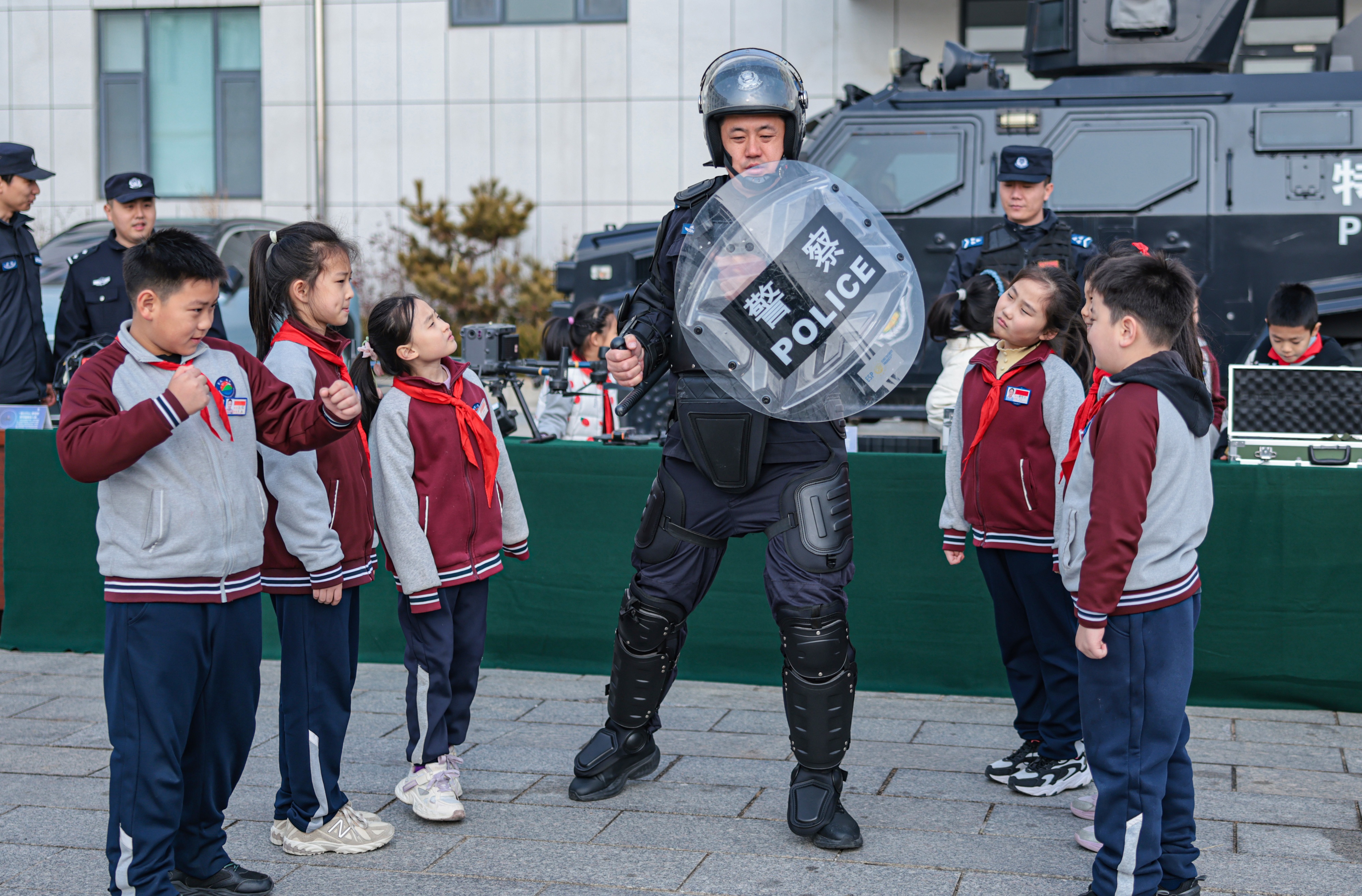 1月9日,荣成市妇联联合荣成市公安局、府新小学,在特巡警大队训练场开展警徽映童心科技护成长主题活动。小学生们走进警营,开启沉浸式体验之旅。(李信君赵水秀毕云飞)
