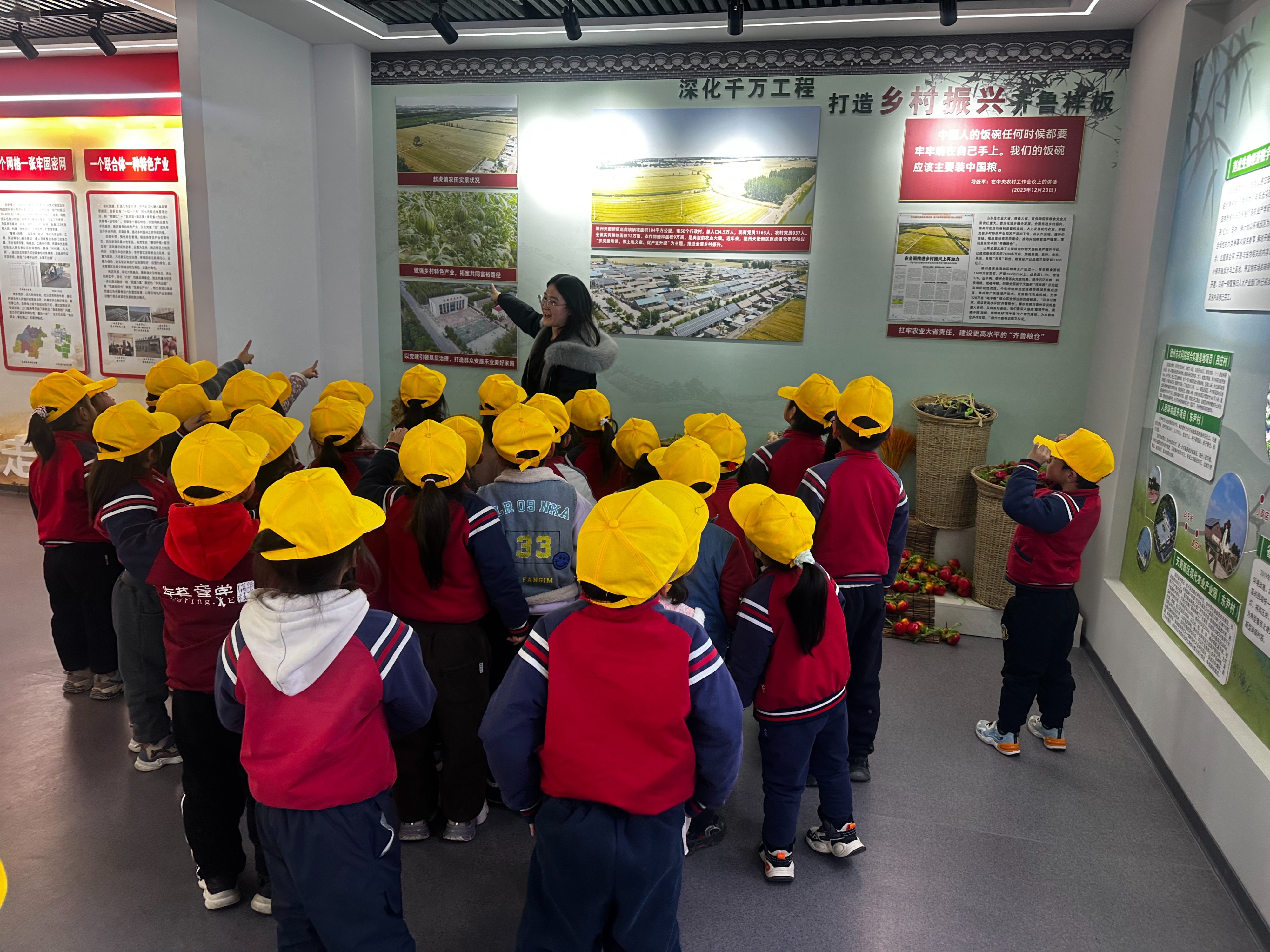 科普活动结束后,志愿者带领孩子们来到赵虎镇党员学习教育基地。志愿者化身“红色讲解员”,用孩子们能听懂的家常话,讲述着赵虎镇的发展故事。这场特殊的教育体验,不仅让孩子们对党员群体有了更深刻的认识,更实现了干部群众教育的双向浸润,让红色种子在他们心中悄然萌芽。