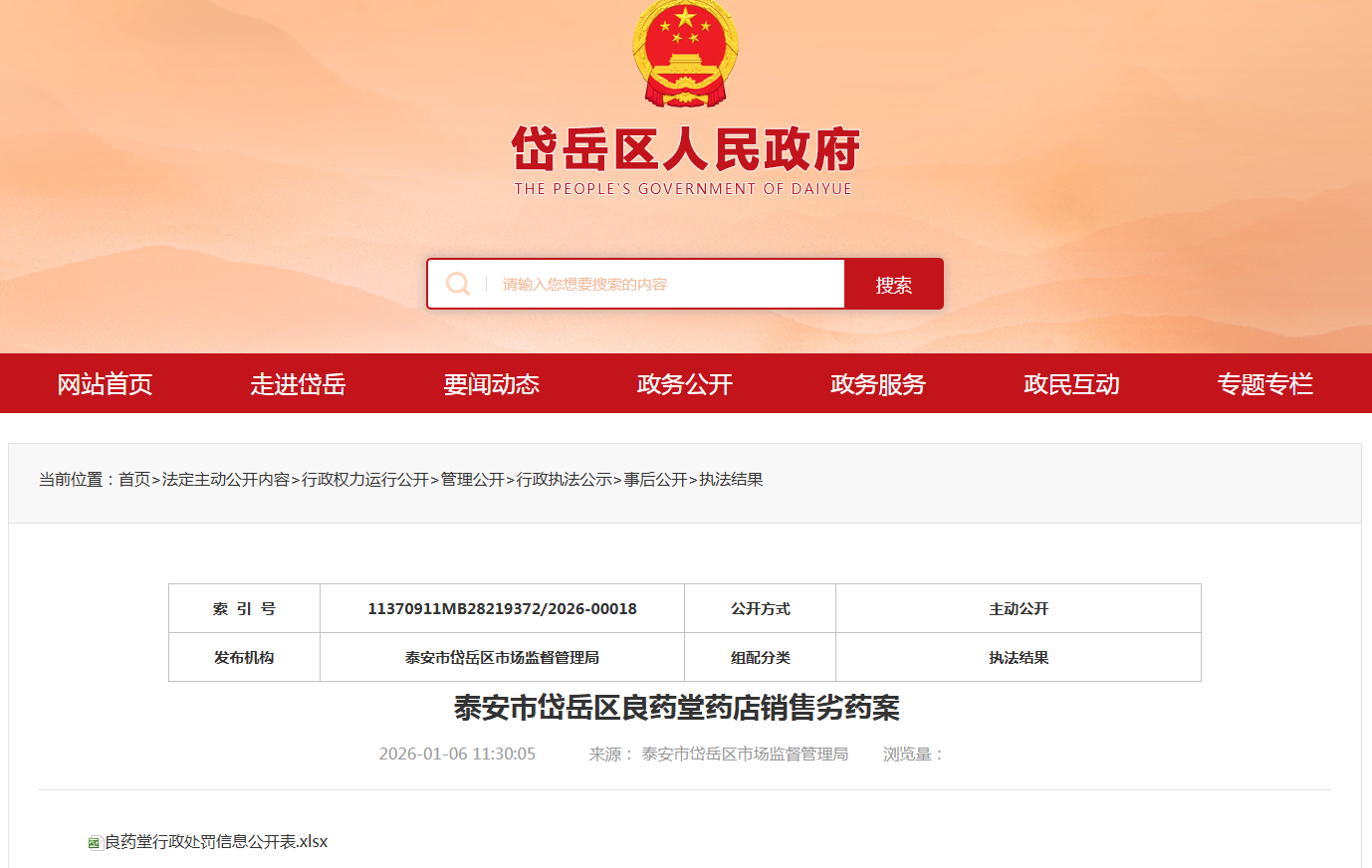 近日,岱岳区人民政府网站发布泰安市玄家楼药业有限公司经营失效医疗器械、未从药品上市许可持有人或者具有药品生产、经营资格的企业购进药品案和泰安市岱岳区良药堂药店销售劣药案,具体内容如下: