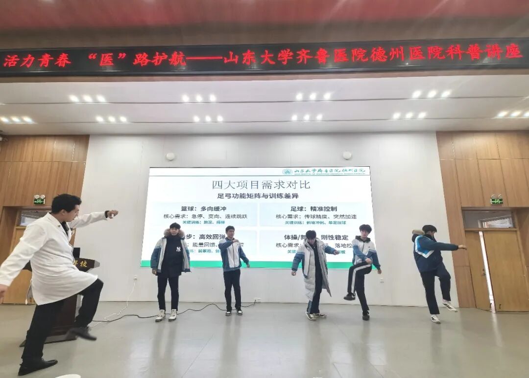 1月8日下午,一场别开生面的健康科普宣讲与义诊活动在跃华中学拉开帷幕。齐鲁医院德州医院外科第一党支部的医疗专家团队走进校园,为该校体育生及医务室老师送上专业的健康服务。