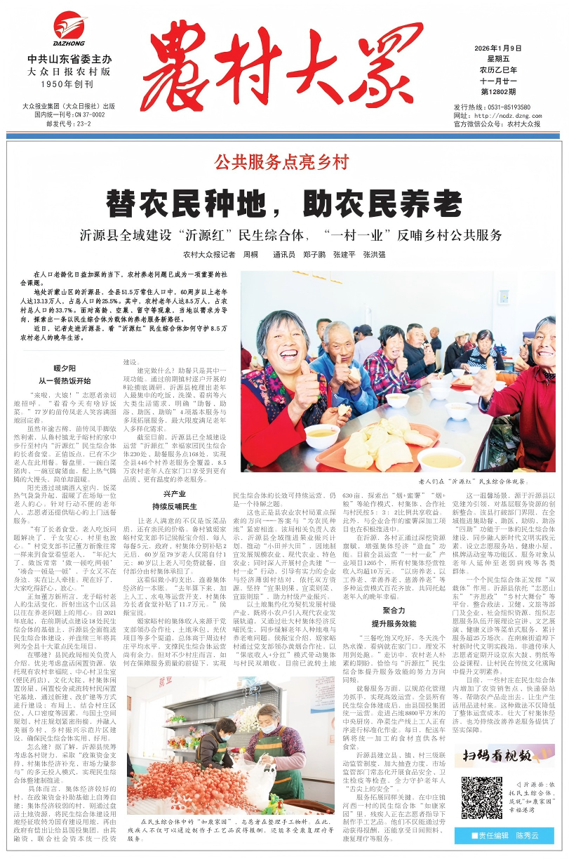 今日报纸头条|替农民种地,助农民养老——“沂源红”民生综合体守护8.5万农村老人晚年生活