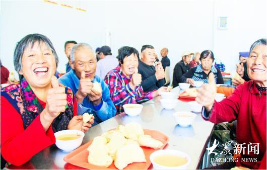 老人们在“沂源红”民生综合体就餐。