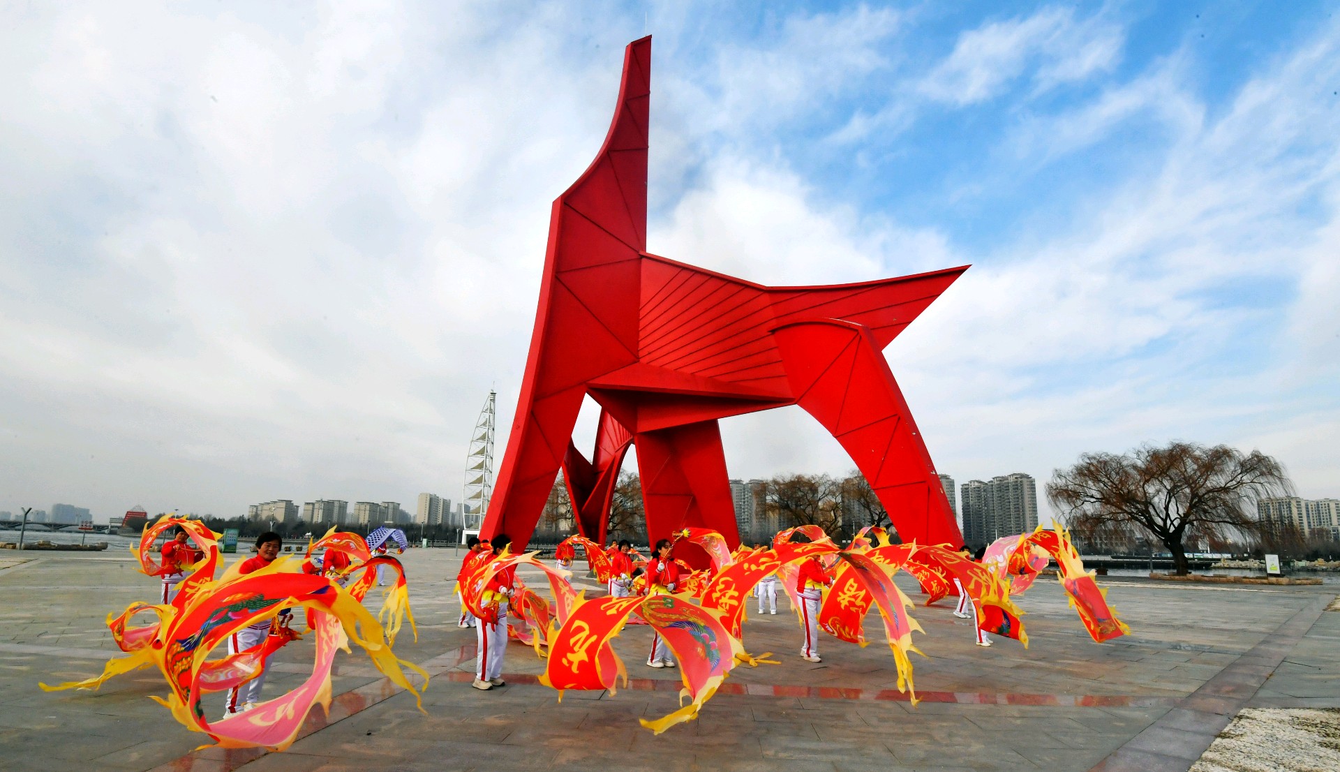 那抹耀眼的中国红,与造型别致的龙韵雕塑相映成趣,勾勒出一幅喜庆祥和的新年画卷。围观群众纷纷驻足观赏、拍手叫好,掌声与欢笑声此起彼伏,浓浓的年味在潍河之畔肆意弥漫。