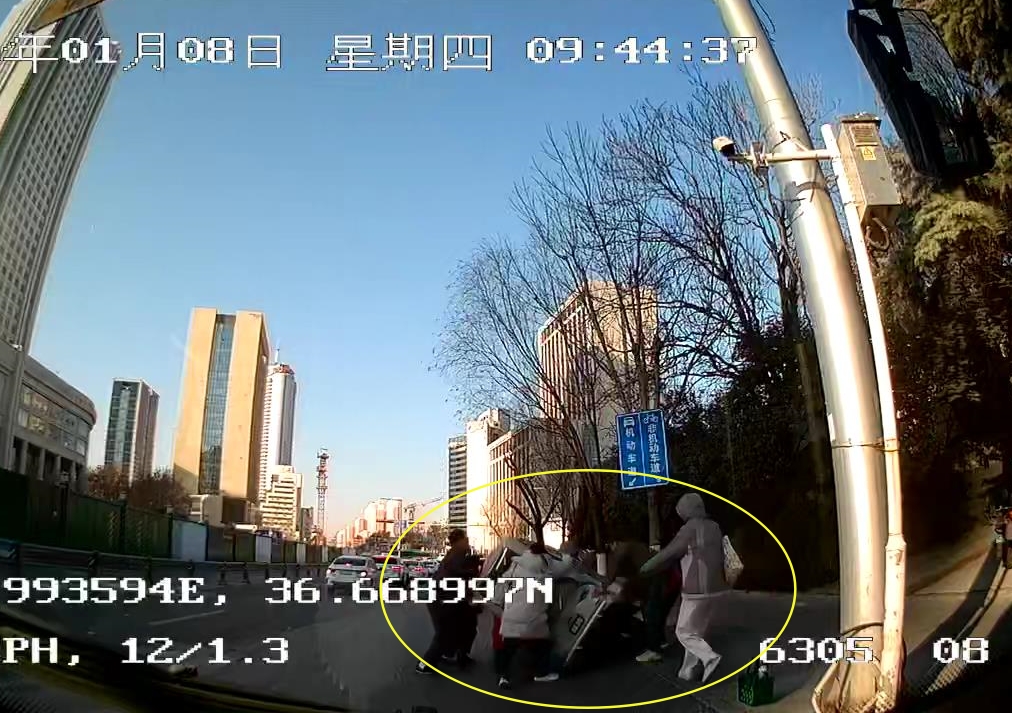 当时早高峰刚过,董旭驾驶车辆行至经一纬二站附近时,他远远发现前方道路中央有异常情况:一辆三轮车侧翻在地,驾驶室内有人被困,周围已有市民上前查看。董旭在确保安全的前提下迅速将公交车靠边停稳,开启双闪警示灯后,立即下车帮忙。