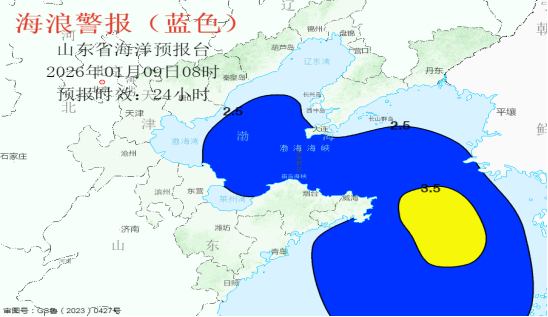 山东省海洋预报台根据《山东省风暴潮、海浪、海啸和海冰灾害应急预案》发布海浪蓝色警报。