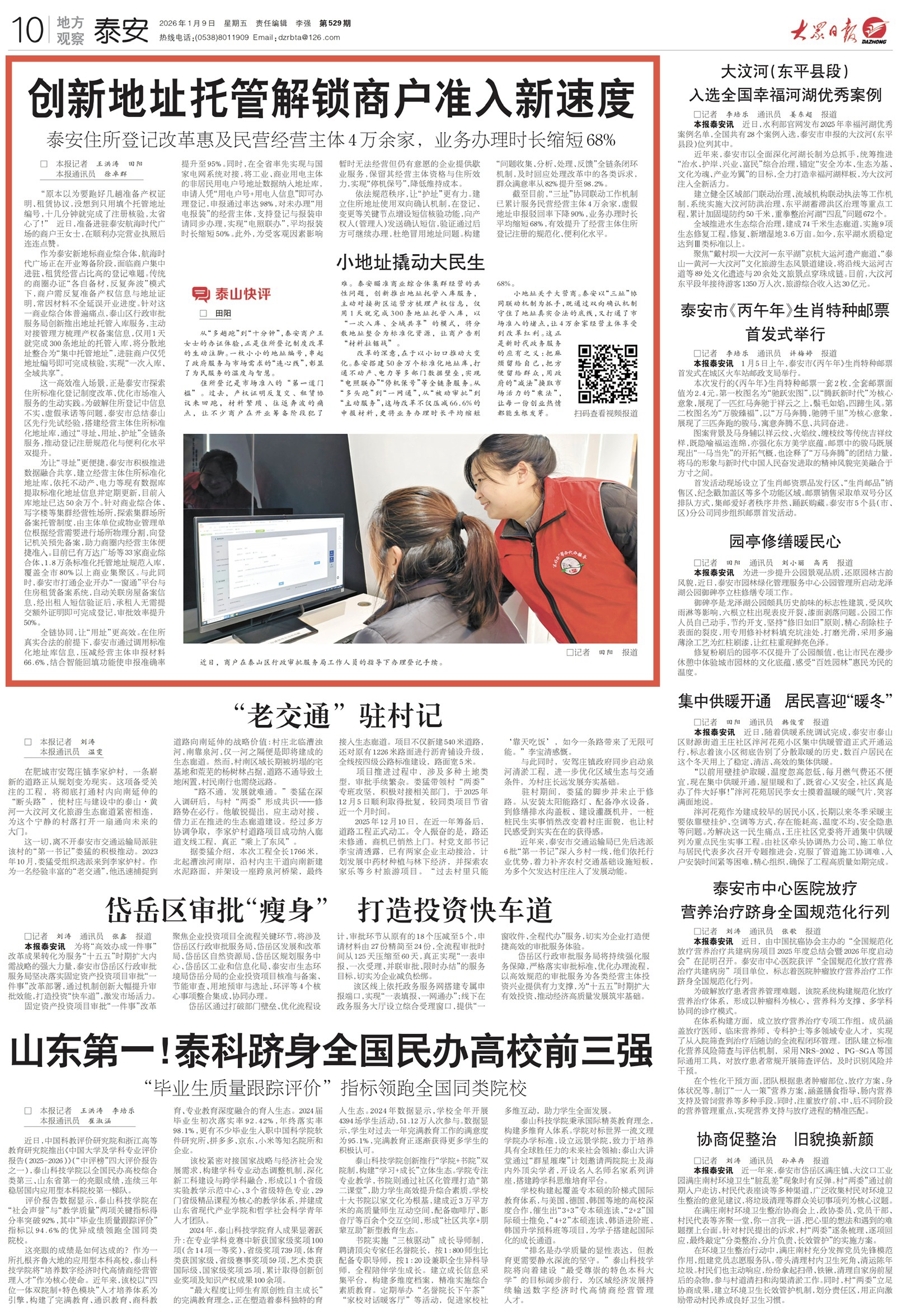 1月9日,大众日报《泰安新闻》推出策划《创新地址托管解锁商户准入新速度》,报道泰安住所登记改革惠及民营经营主体4万余家,业务办理时长缩短68%。详情请点击这里—