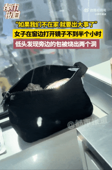 美妆镜将阳光聚焦到黑色包包上