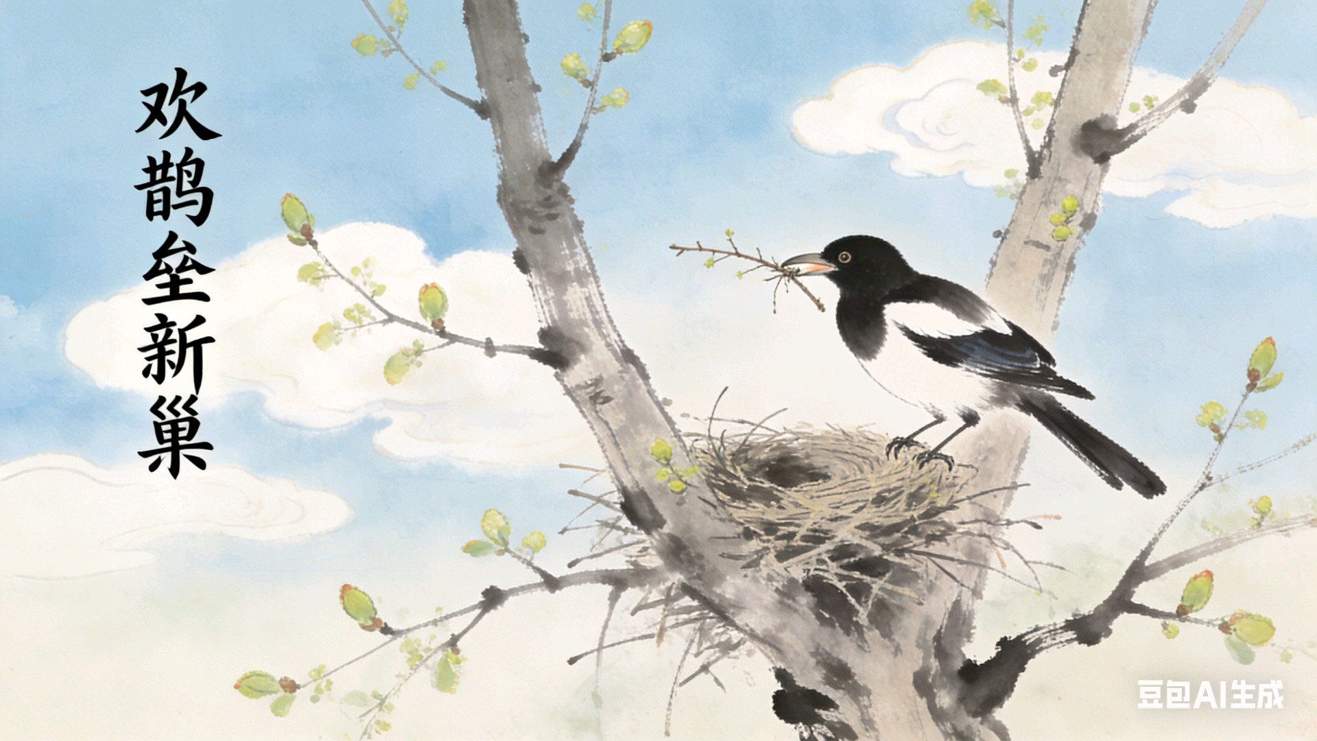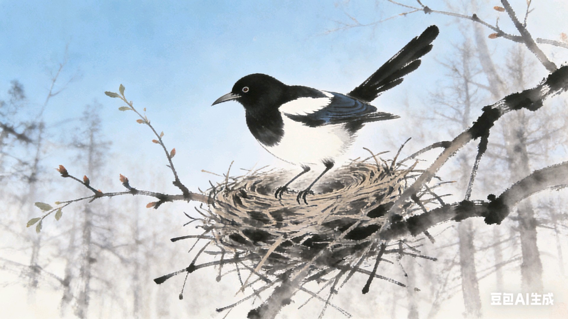 那逆风而上的鹊影,以及一两声短促而清越的鸣叫,不是匆忙觅食,而是在执行一项使命——以最朴素的劳作,呼应泥土深处阳气微弱的脉动,将那不可见的温暖,编织成一个个可见的、坚实的巢穴,悬在树梢。
