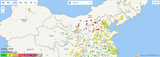 图1 1月9日14时PM10浓度分布图(来源:中国环境监测总站)