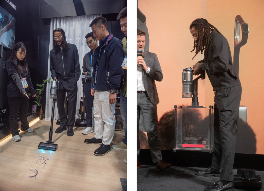 除了NBA球星带来的超高热度之外,全球知名媒体、KOL也齐聚追觅吸尘器展台,深度体验新品。