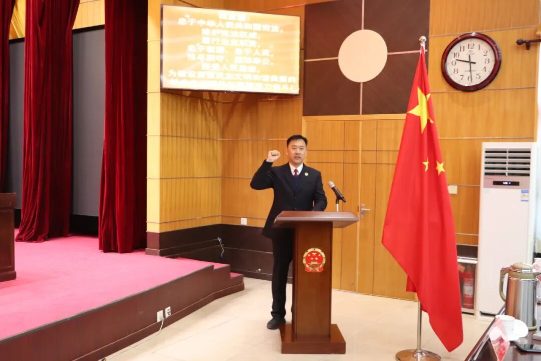 1月9日,青岛市李沧区七届人大常委会第三十次会议召开。会议表决通过了人事任免项,任命马洪斌同志为李沧区人民检察院副检察长、检察委员会委员、检察员,决定马洪斌同志为李沧区人民检察院代理检察长。颁发任命书举行向宪法宣誓仪式(青岛市李沧区人民检察院)