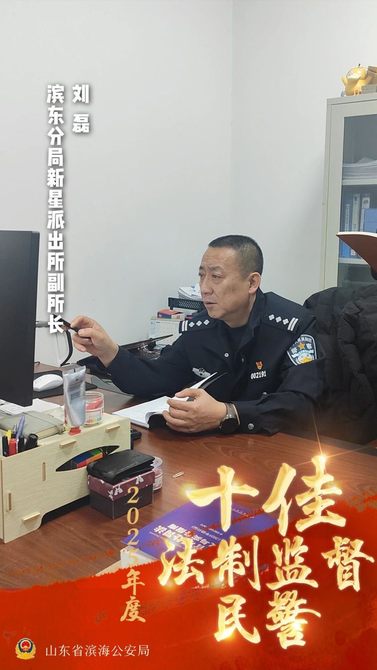 刘磊,男,50岁,中共党员,现任滨东分局新星派出所副所长、一级警长(在胜东派出所工作),兼任派出所法制员。