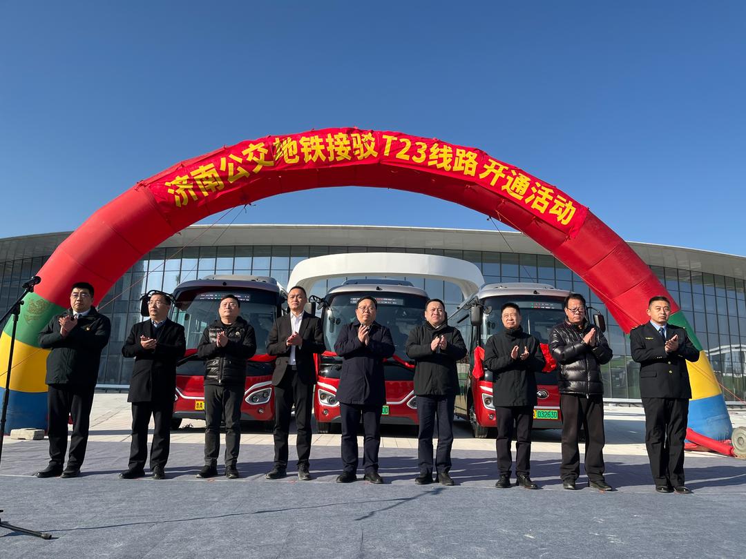 1月9日上午10时许,在济南邦德集团全球总部基地东门口,济南公交T23路举行了简短的开通仪式。T23路由虞山路东口开往地铁彭家庄站,是今年济南公交集团开通的首条线路。