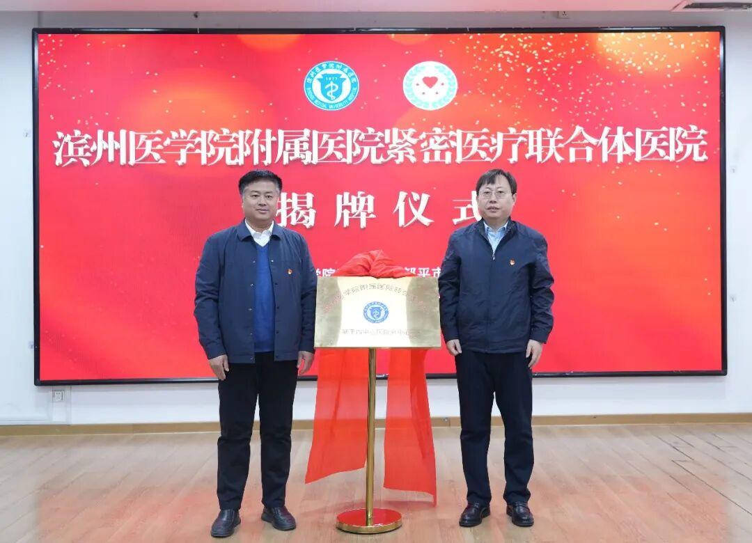 会上,孙东平与王东、陈涛与石斗飞分别为“滨州医学院附属医院紧密医疗联合体医院”“滨州医学院附属医院转会诊中心邹平市中心医院分中心”揭牌,标志着两家医院的协作迈入资源共享、协同发展的新阶段。