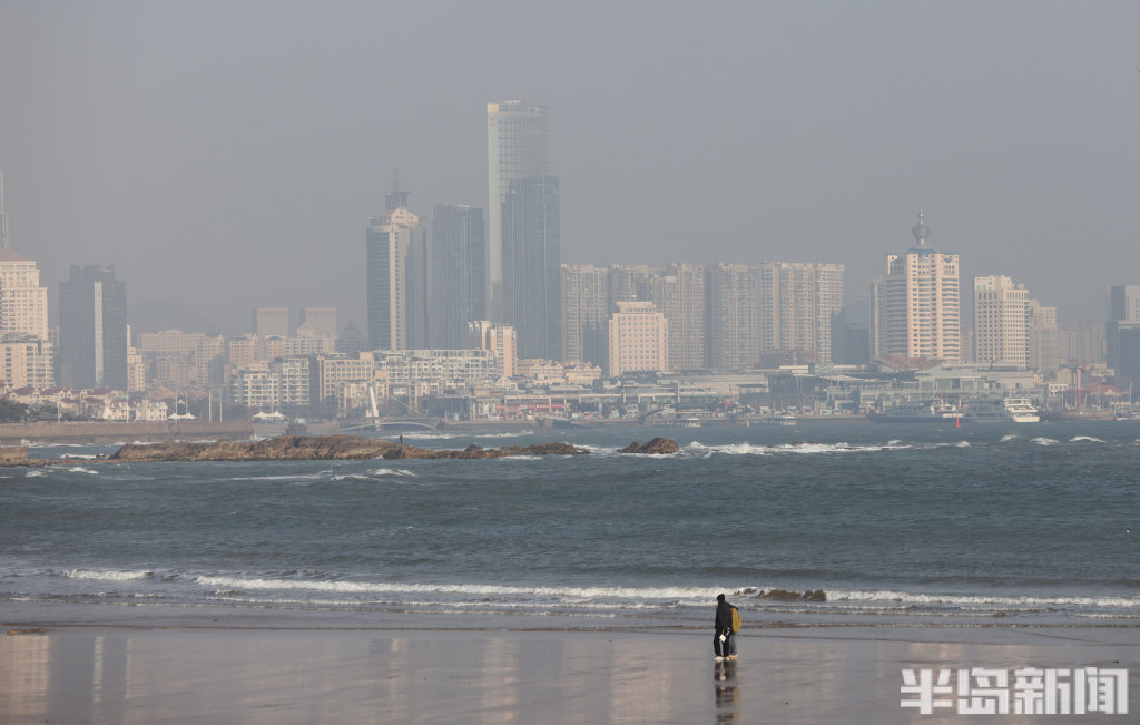 1月9日,岛城沿海一线雾气缭绕,轻纱般的雾气为海岸披上了一层朦胧滤镜。局部海域能见度偏低,从第三海水浴场远眺,奥帆中心的帆影、浮山湾畔的摩天楼宇皆被薄雾轻裹,在氤氲光影中若隐若现,宛如一幅写意水墨画卷。恰逢退潮时分,不少市民循着这份冬日独有的惬意来到岸边,或悠闲踱步或慢跑锻炼,在静谧与海风中,感受着海岸边的活力与安宁,为凛冽冬日增添了一抹生活暖意。(半岛全媒体记者何毅)