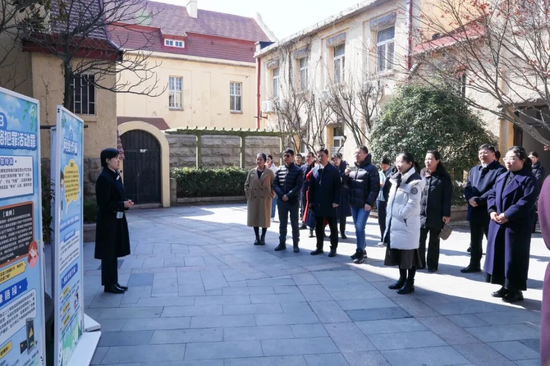 全国部分省区检察教育培训跨区域协作座谈会暨现场教学评测活动在青岛举行。考察团一行实地查看了我院院容院貌、数据演示大厅,听取了未成年人检察“会说话的展板”工作汇报。