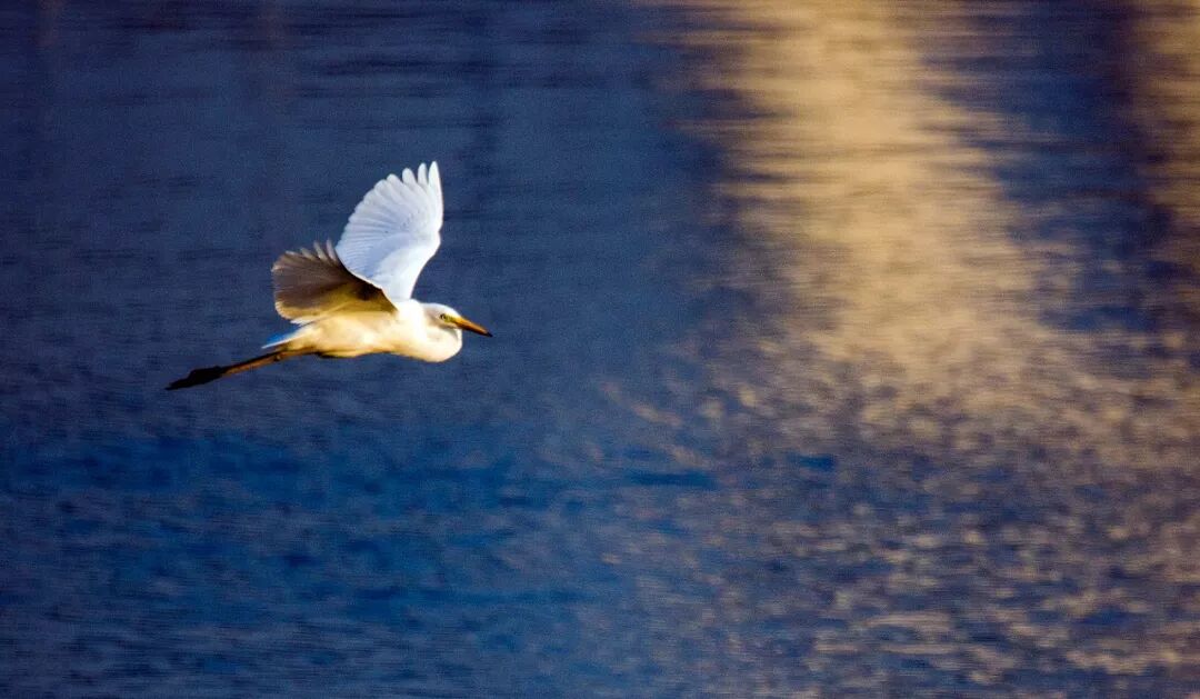 冬日的孝妇河也是各种水禽涉禽的乐园和舞台。蓝天之下,高飞的鸟儿,流动的河水,交织成一幅自然和谐的美好画面。
