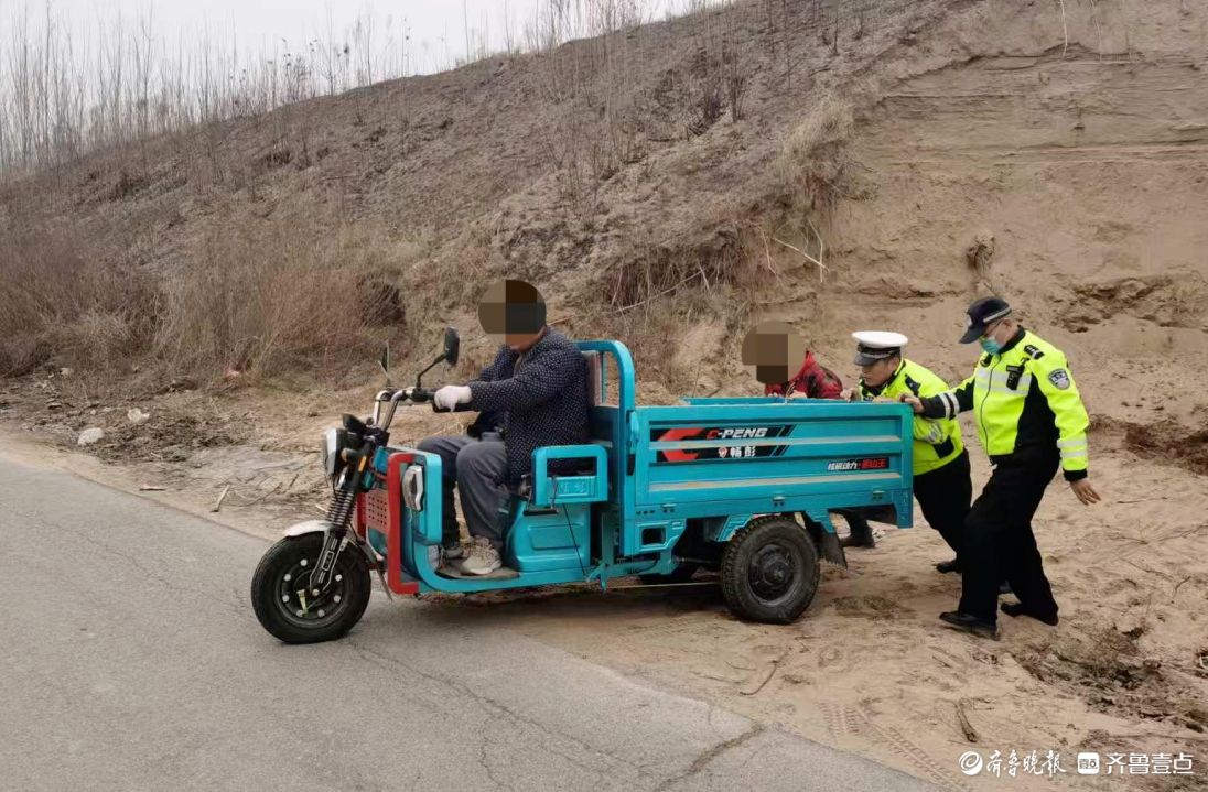 满载三轮车被困坡下,东阿巡逻交警暖心出手