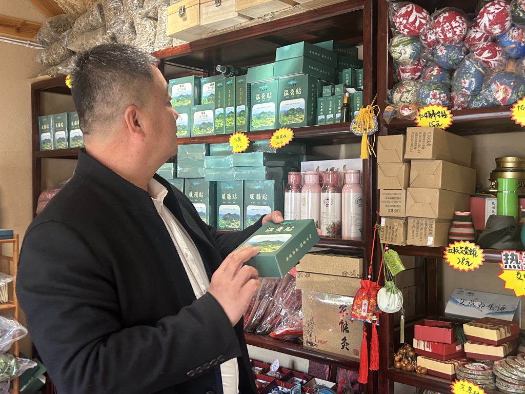 艾草产业的快速发展,也让卜钦龙面临着坚守传统手作技艺与引入现代机械效率之间的取舍。“一台缠锤机器成本几千元,一天产量能顶好几个工人,成本很快就能收回。”但他坚持目前主要采用手工制作,“一个熟练村民一天能做100个左右,收入100多元。如果全用机器,这部分收入就没了。”在他看来,手造不仅承载着非遗技艺的温度和感情,更是当下让村民在家门口稳定增收的重要途径。他计划,只有当未来产业链进一步升级,村民转向更需要技能的艾灸服务等岗位时,才会考虑在部分环节引入机械化,而把服务型岗位更多地留给村民。