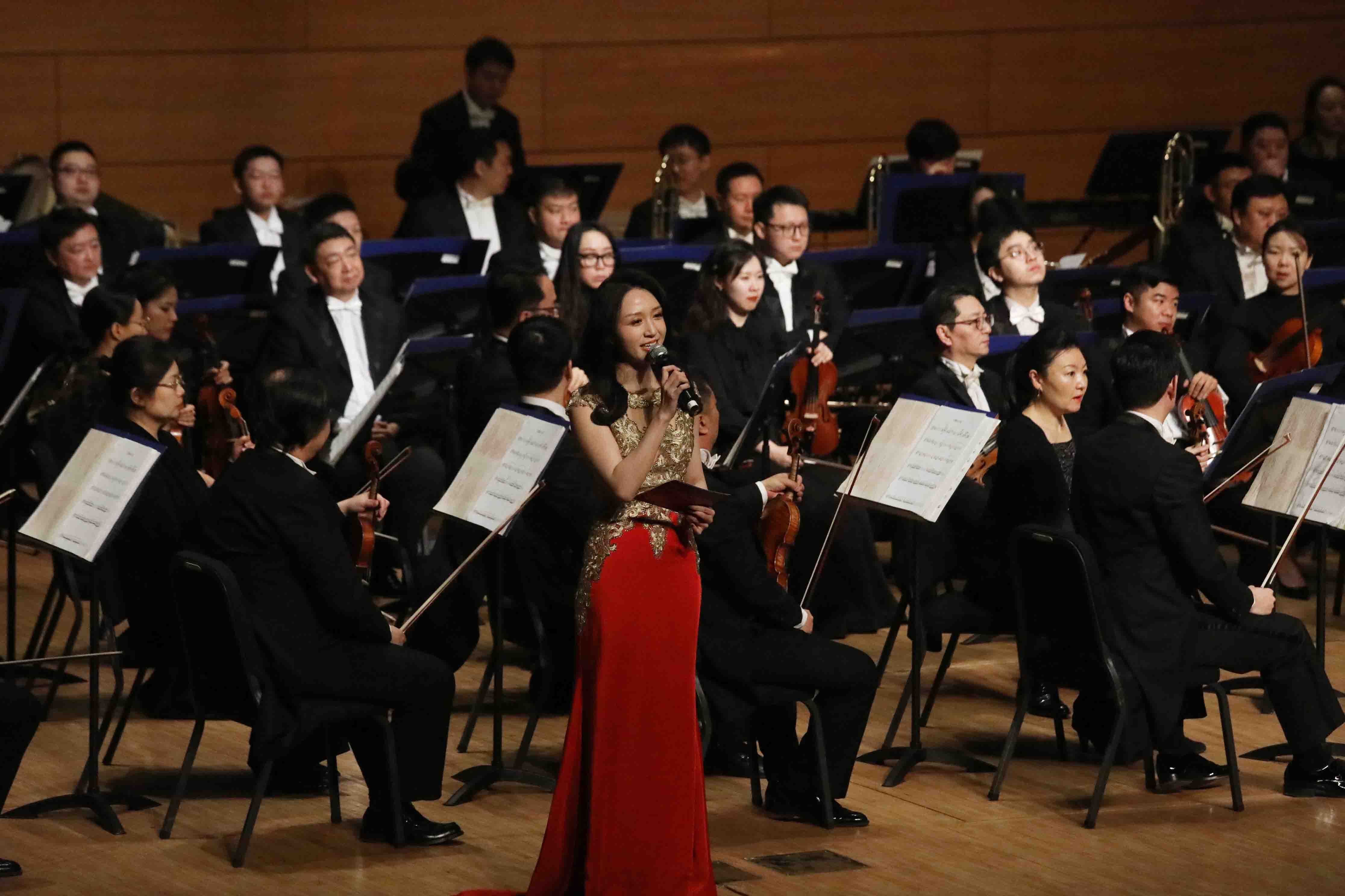 当《我的中国心》的旋律响起,激昂的歌声引发全场共鸣,观众们情不自禁地跟着哼唱,音乐厅内涌动着浓浓的家国情怀。