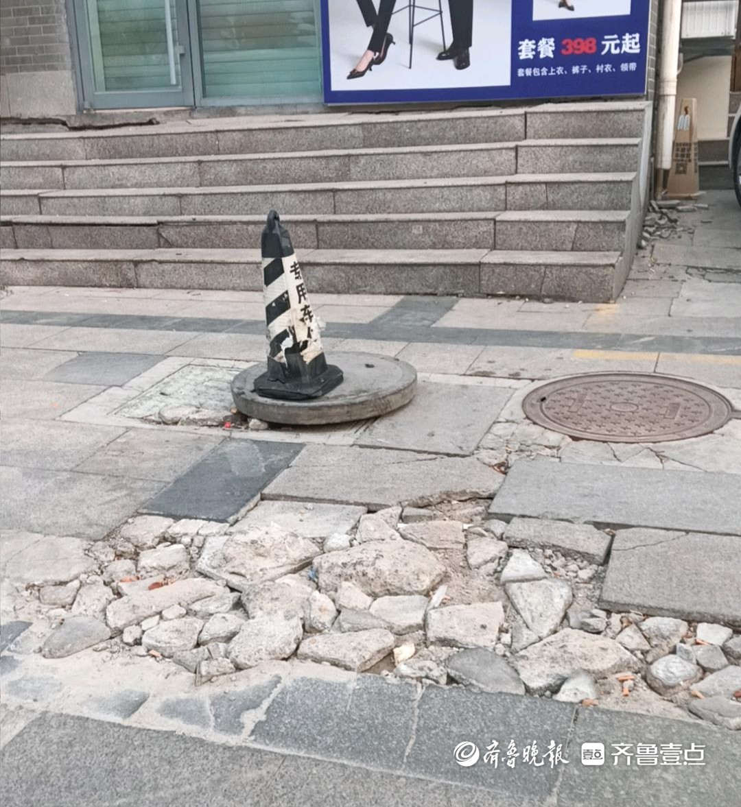 情报站·随手拍|泰安财源大街人行道“破相”,坑洼不平亟待修复